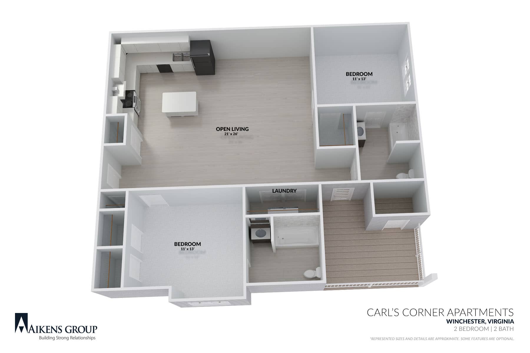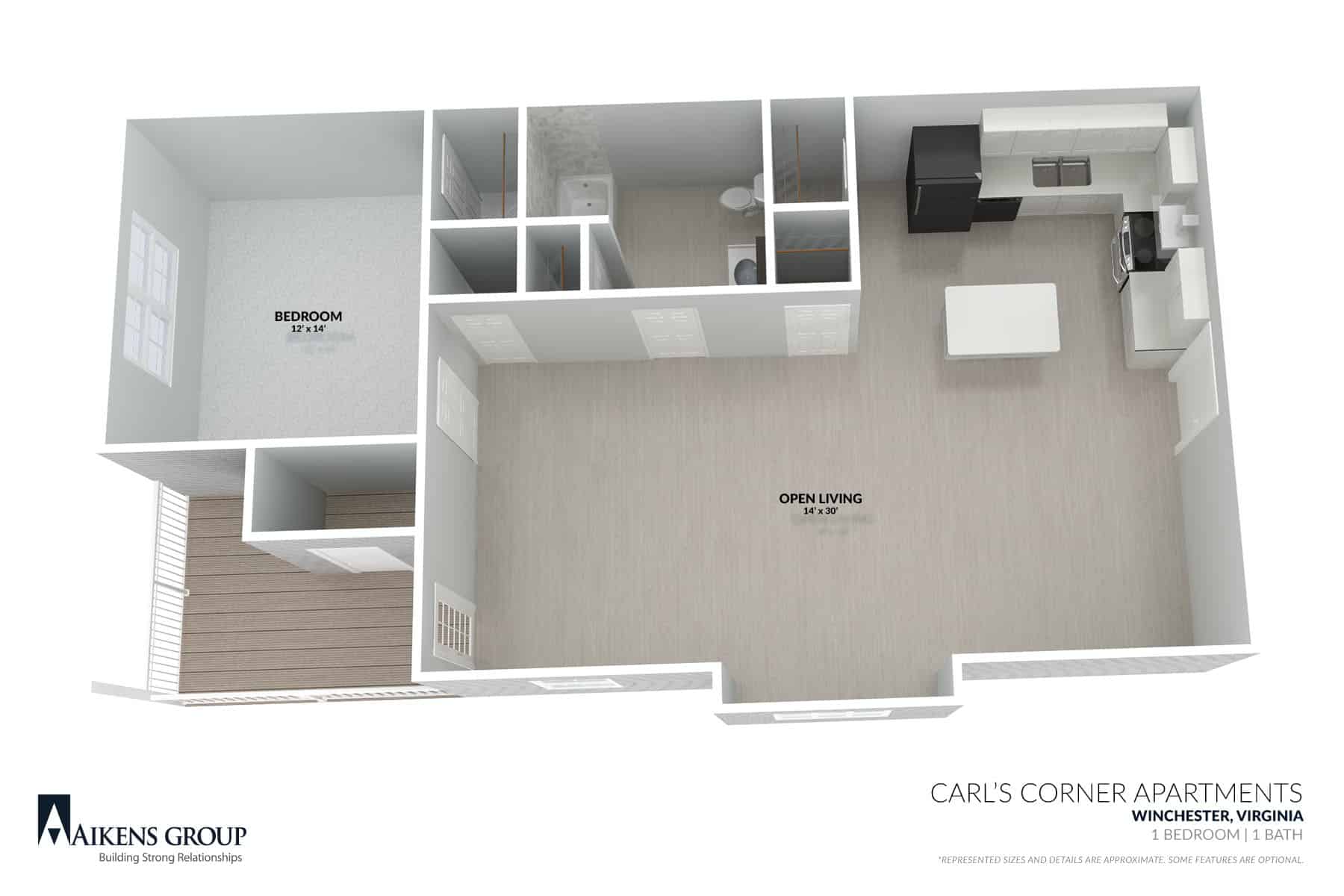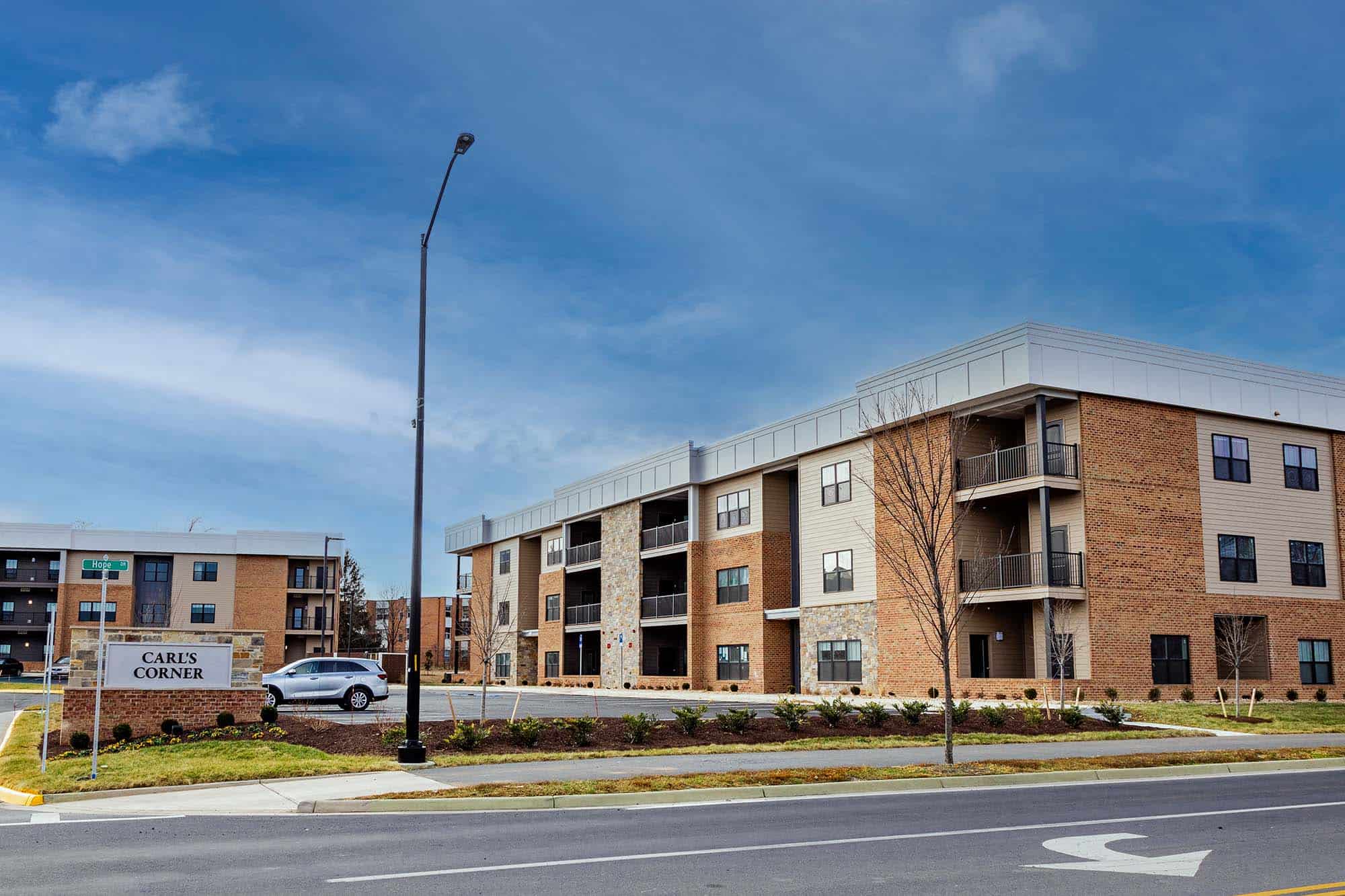 This new mixed-use community is centrally located in Winchester with quick access to Routes 522 and I-81. Designed for modern, convenient living, Carl’s Corner features three residential buildings and a standalone commercial complex.