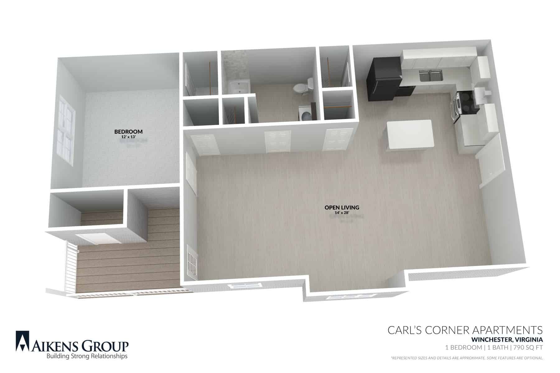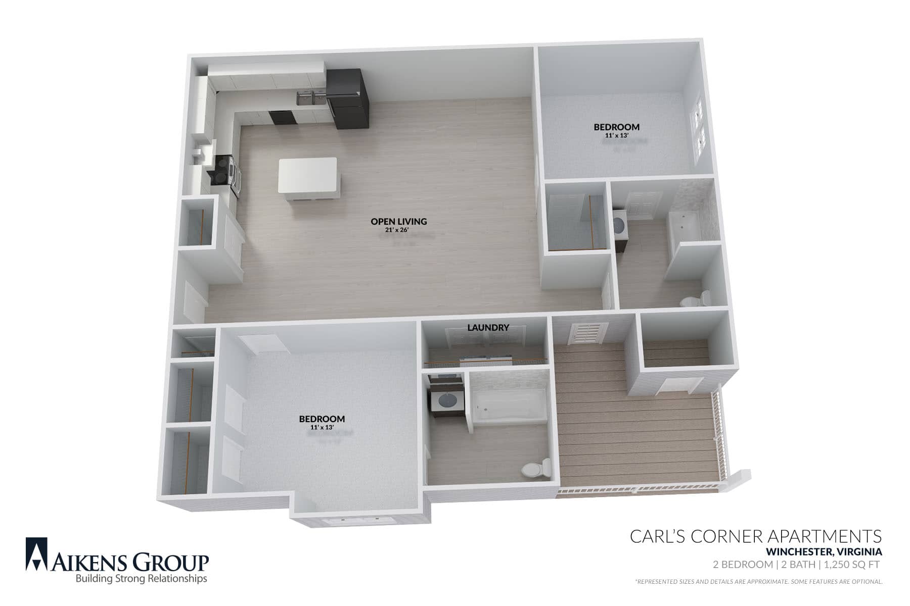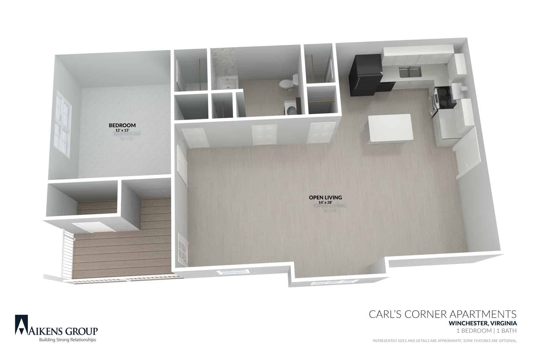 This new mixed-use community is centrally located in Winchester with quick access to Routes 522 and I-81. Designed for modern, convenient living, Carl’s Corner features three residential buildings and a standalone commercial complex.