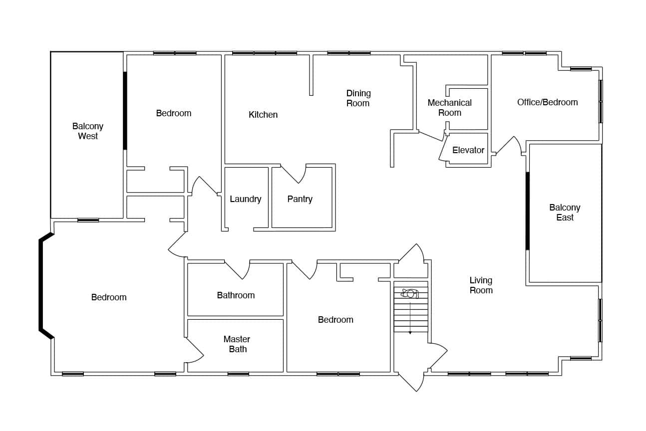 This newly renovated 2,400 square foot penthouse includes 4-bedrooms, 2-bathrooms, two reserved garage private parking spaces, private elevator access, private garage storage spaces, black appliances, new vinyl flooring, new carpet, internal air conditioning and electric heat, built-in microwave, in-suite laundry, dishwasher, garbage disposal, new quartz countertops, new artisan detail, with full extension, cabinets with black hardware, and a sunroom with a private balcony of city and mountain views.