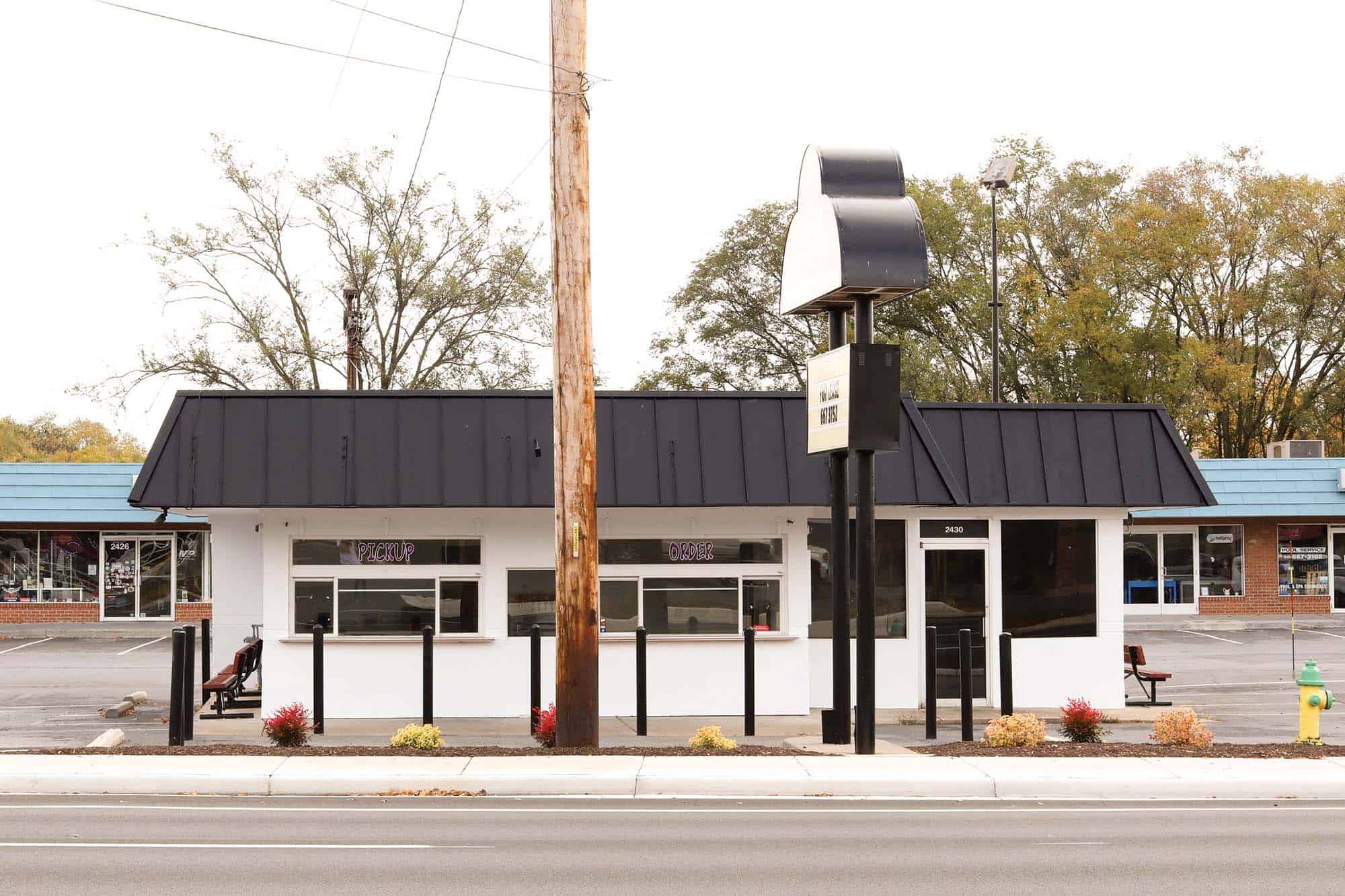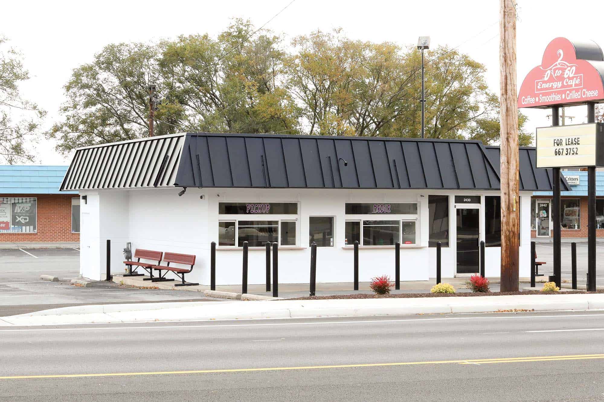 This is a 1,362 sq ft stand-alone building that includes both an outside walkup counter and small inside seating area. There is a large operations area with an additional kitchen, private office, interior bathroom, and ample storage in the basement. Currently occupied, will be available for lease soon.