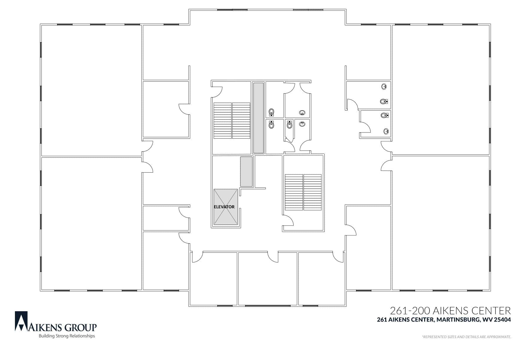 Aikens Center, Suite 200, is a 7,642 sq ft office complex encompassing the complete second floor. This facility boasts secure entrance, large multi-station work area, meeting rooms, exercise/fitness room, shower, bathroom, kitchen, community area, and private offices.