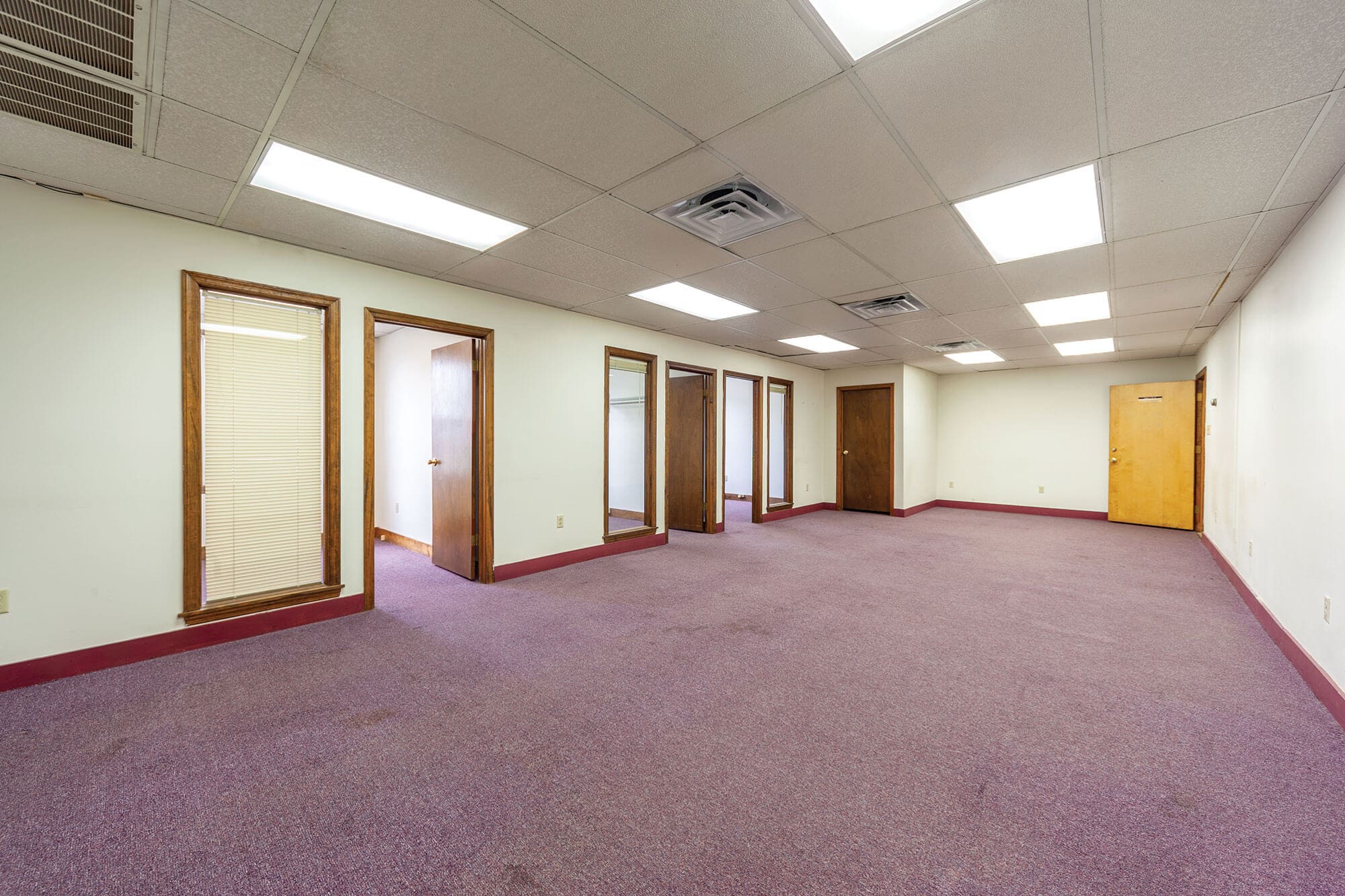This second-floor commercial real estate property is approximately 1038 sq ft of open space, three private offices, and storage area. Accessible via elevator this is the perfect location for any type of professional services company. Men’s & Women’s bathroom on the second floor. Utilities are included.