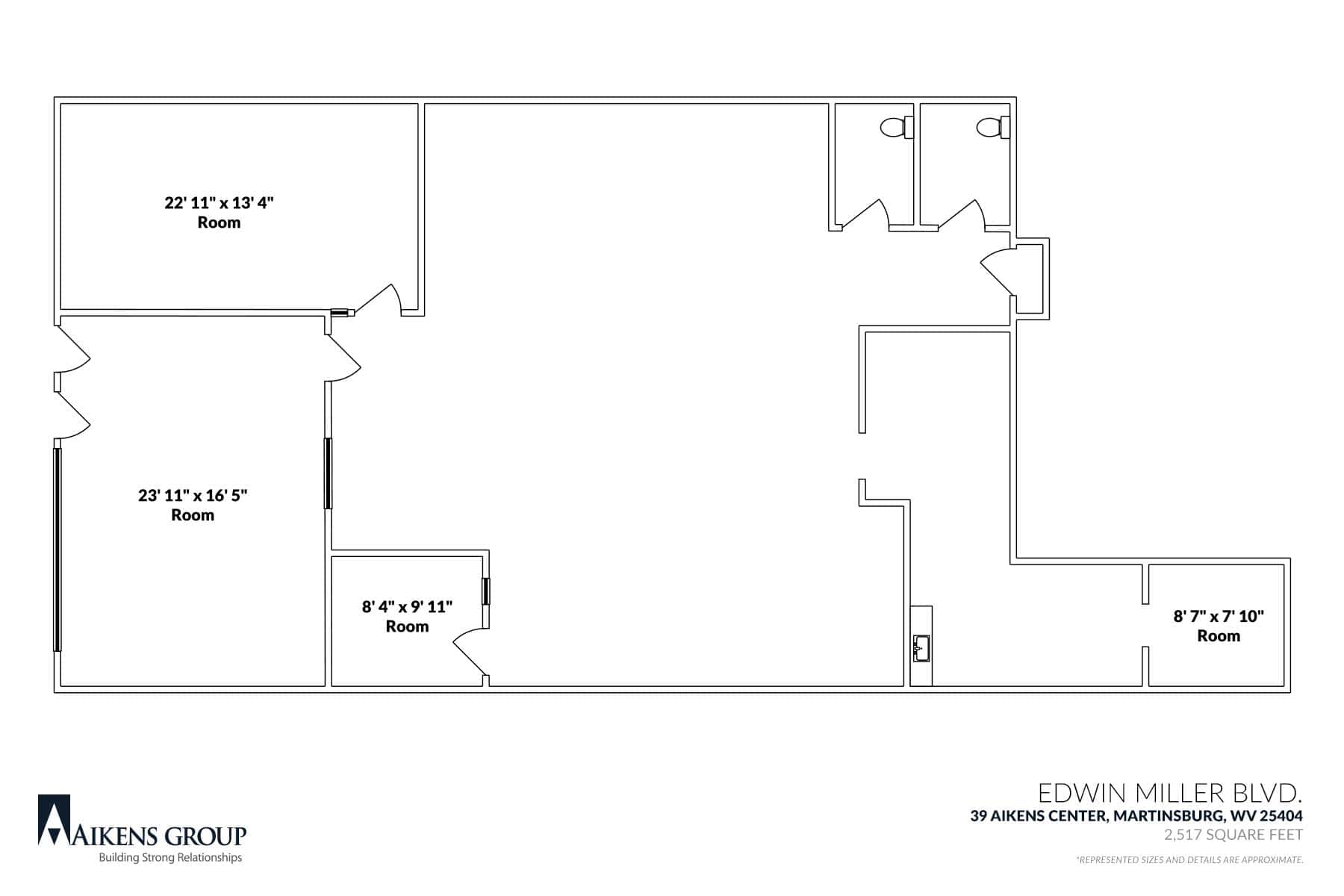 This property is 2,517 sq ft, consisting of a showroom, two offices, a large work area, a kitchenette, and two bathrooms. This property is located on Edwin-Miller Blvd, one of the busiest roads in the Eastern Panhandle, and close to the Raleigh Street by-pass.
