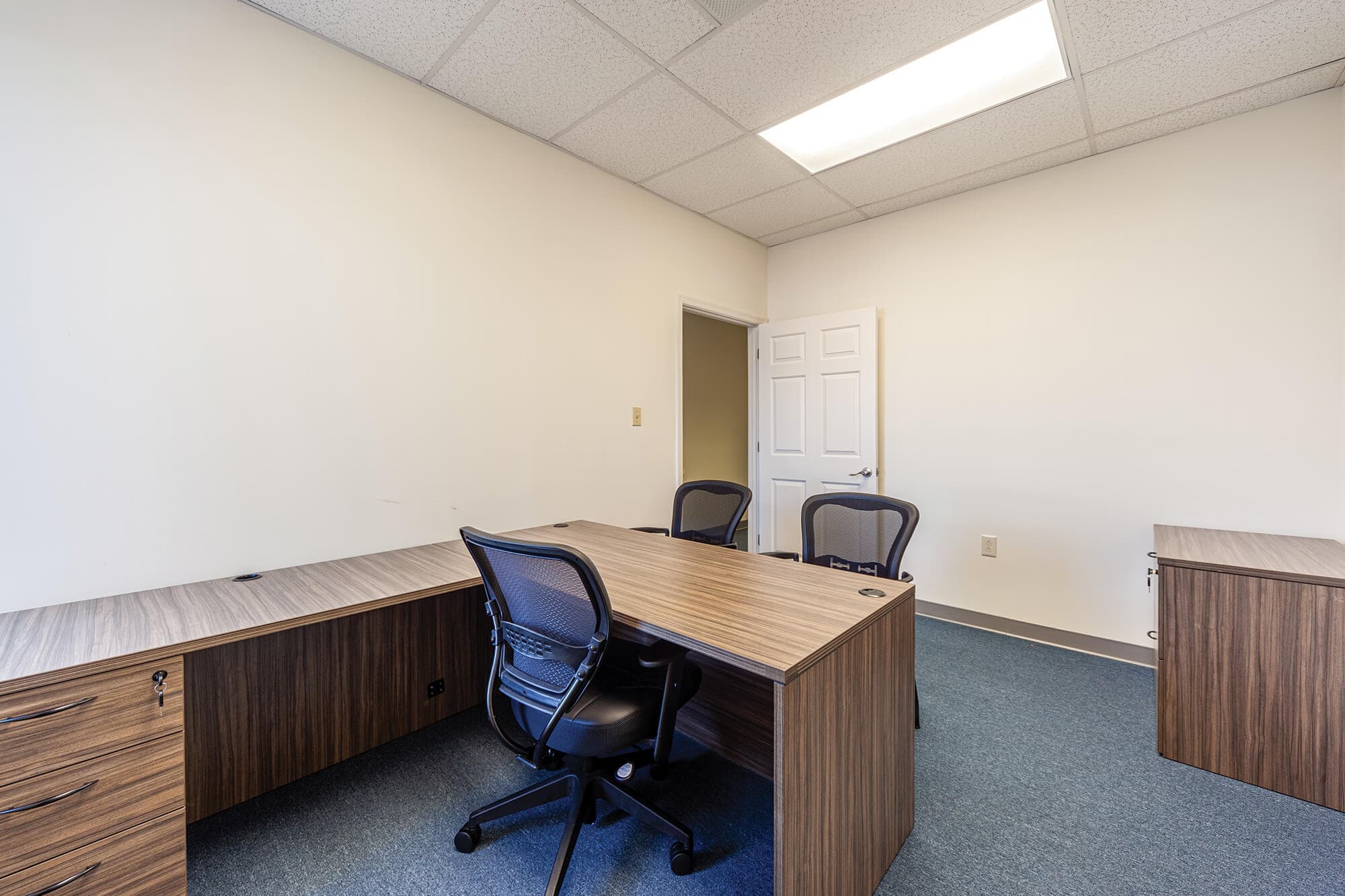 Offering over 2,300 sq ft of professional commercial real estate office space this unit is equipped with a front entrance room/reception window, individual offices, conference room, private bathrooms, and high traffic visibility. Mid-Atlantic parkway is a commercial real estate business center that consists of many different professional and retail businesses. Located a short distance from Edwin Miller Boulevard and Aikens Center Business Park this complex offers over 50,000 square feet of leasing space.