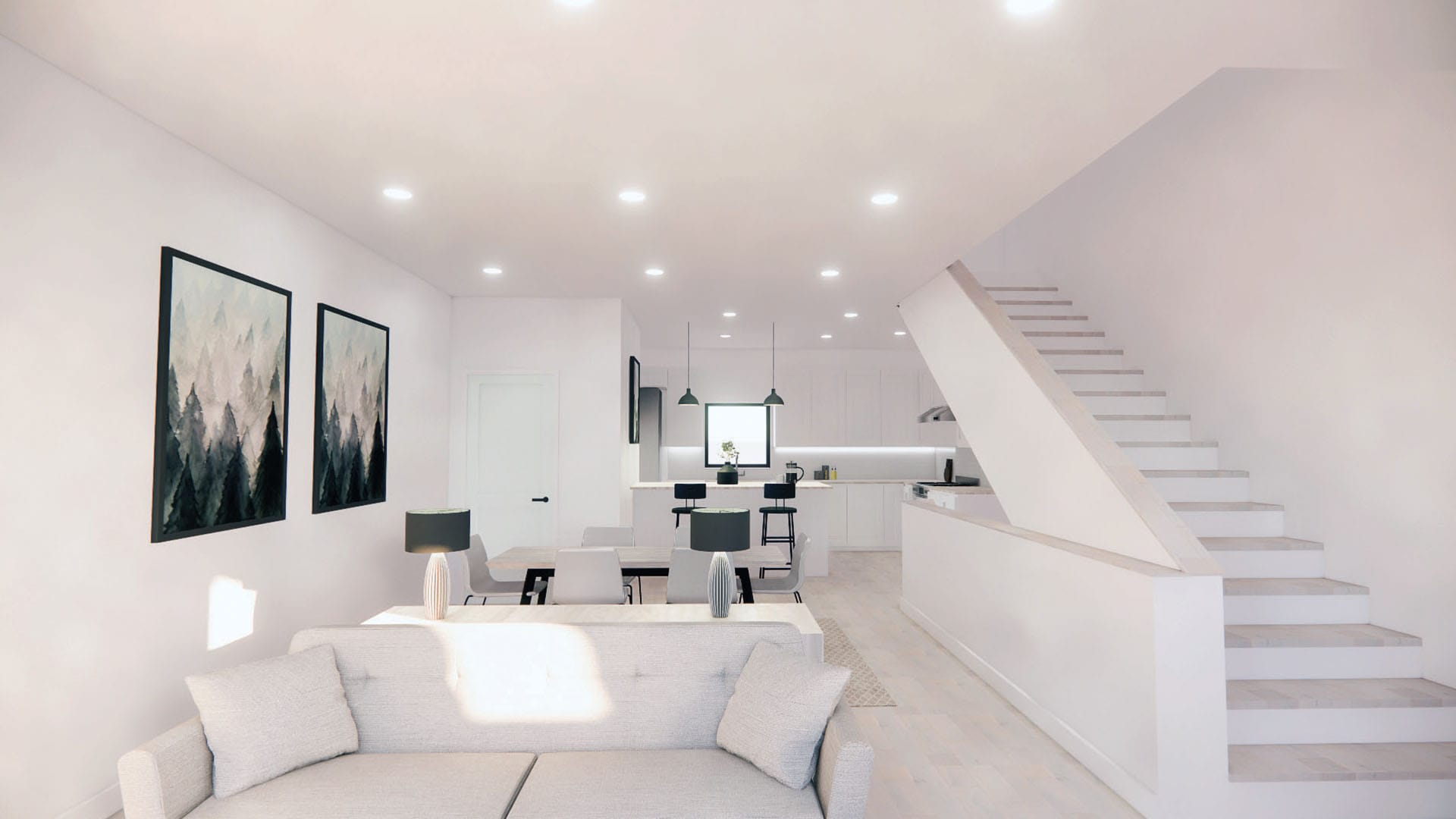 • Two Tone Interior Paint – Flat Wall Paint and White High-Gloss Trim Throughout